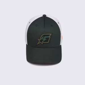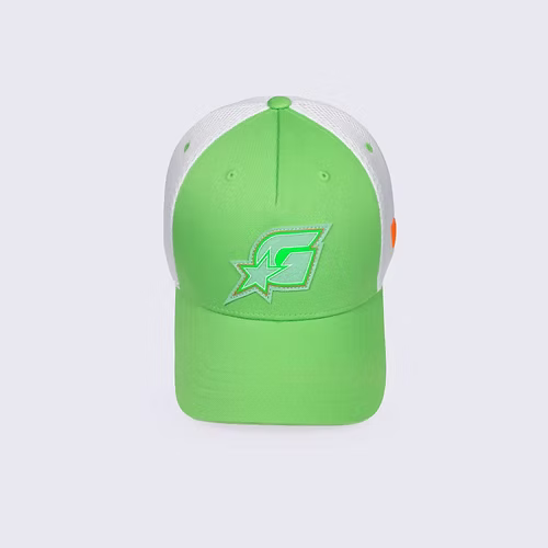 La casquette trucker BILLY STAR est un modèle uni. L’avant est orné d’un patch en silicone et feutrine ton sur ton, surpiqué de manière contrastée pour répondre au patch silicone posé sur le côté. Les côtés et l’arrière de la casquette sont en mesh pour une légère ventilation, renforcée par des œillets respirants brodés.