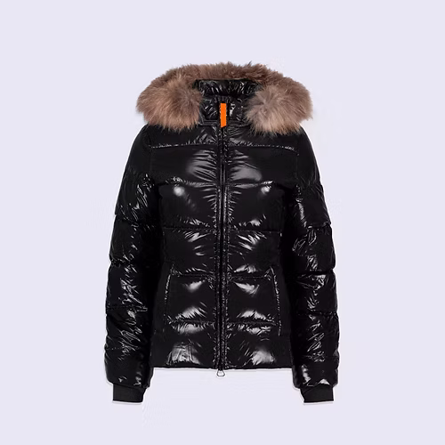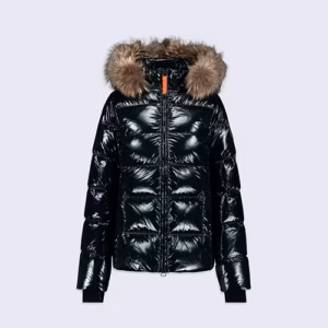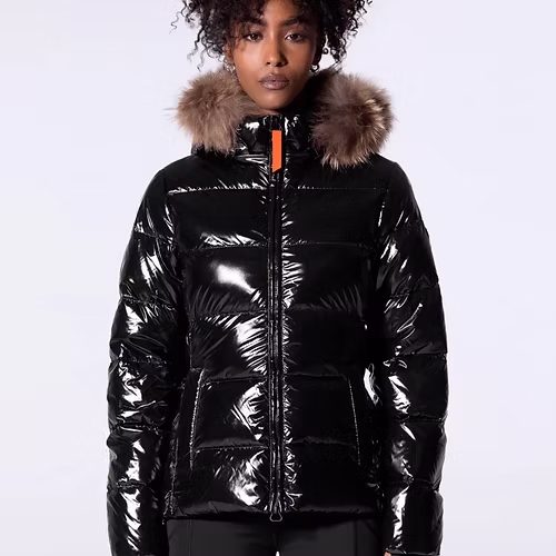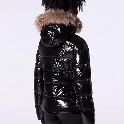 Doudoune glossy cintrée avec capuche en fourrure Olga Bright